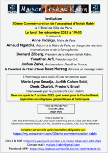 COMMÉMORATION de l’assassinat d’ITSHAK RABIN Réservation obligatoire : https://my.weezevent.com/30eme-commemoration-rabin
